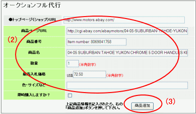 (3) 商品情報の入力が終わったら[商品追加]ボタンを押して下さい。